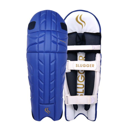 SLUGGER Professional Blue series combo of Cricket Batting leg guards/pads and Gloves