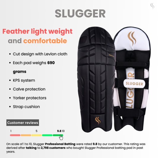 SLUGGER Professional Black series combo of Cricket Batting leg guards/pads and Gloves