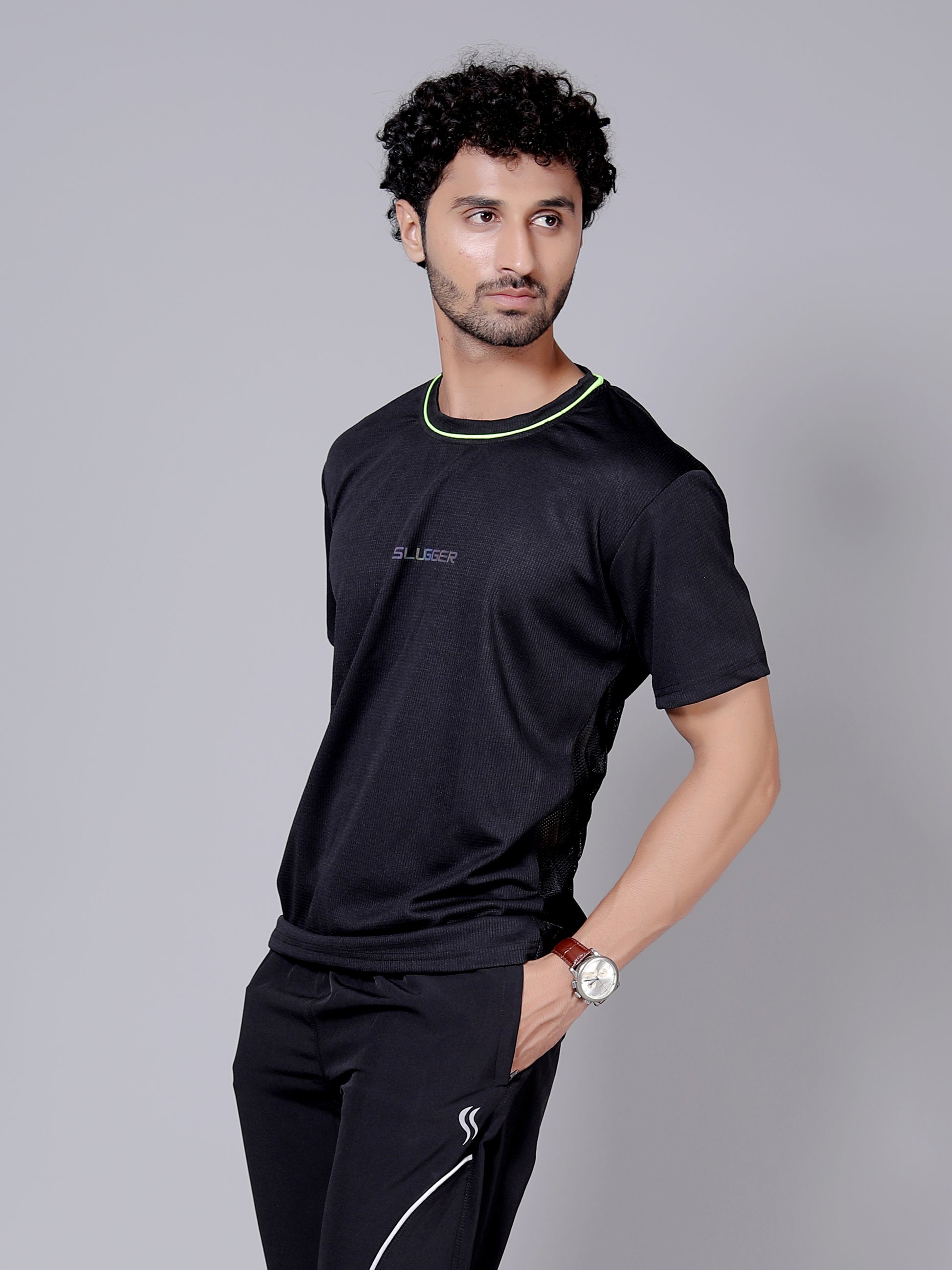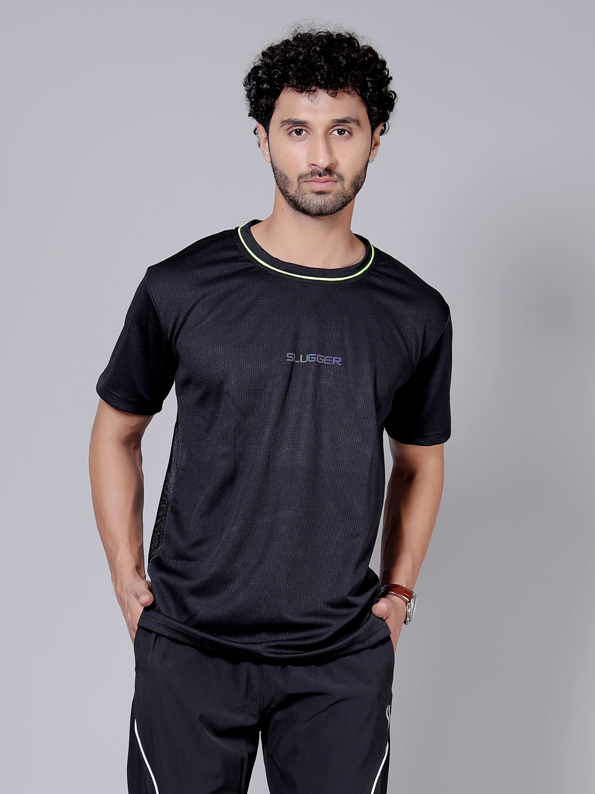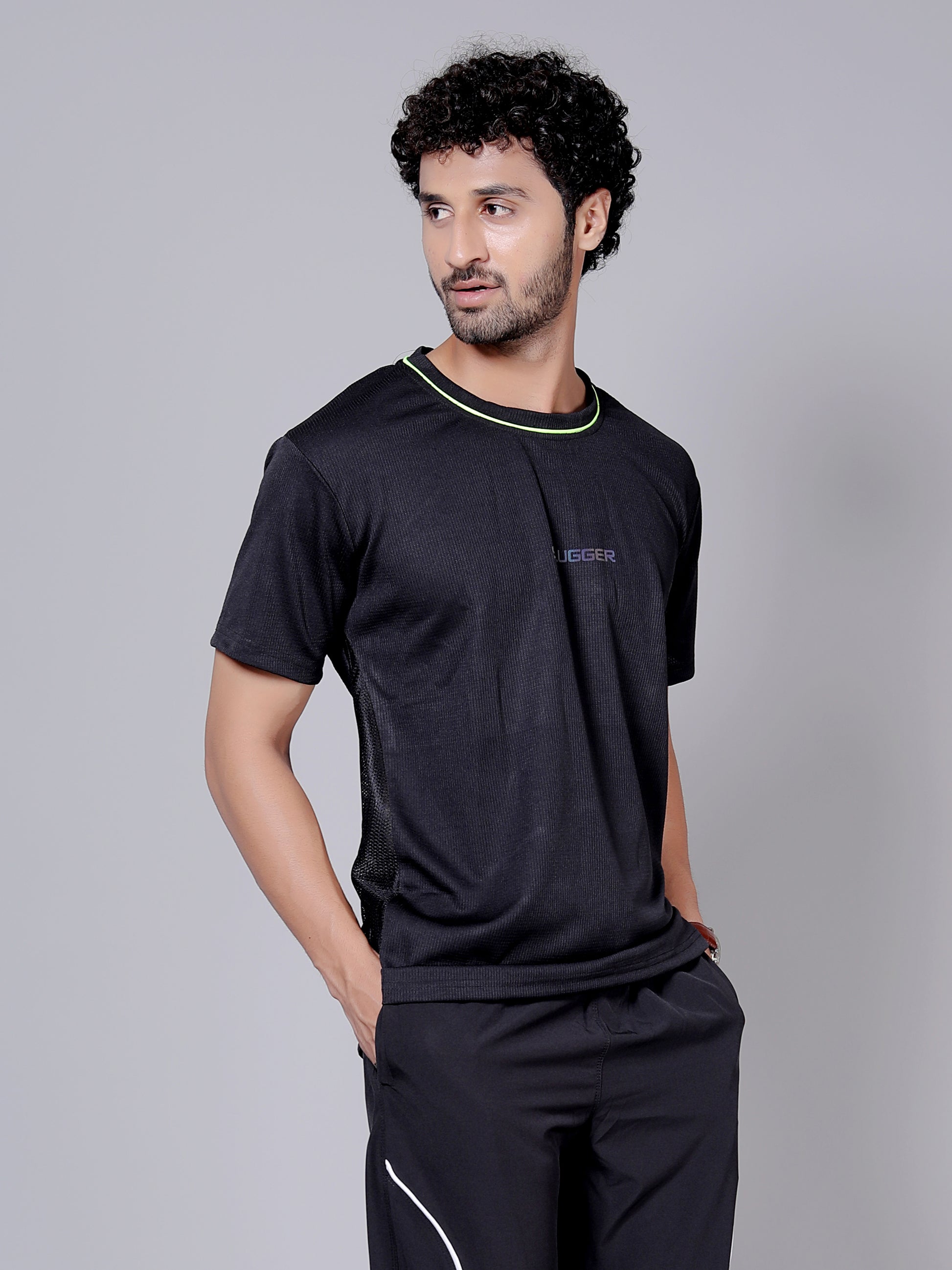 Neon black Dry fit workout T-shirt | Regular Fit & Round Neck