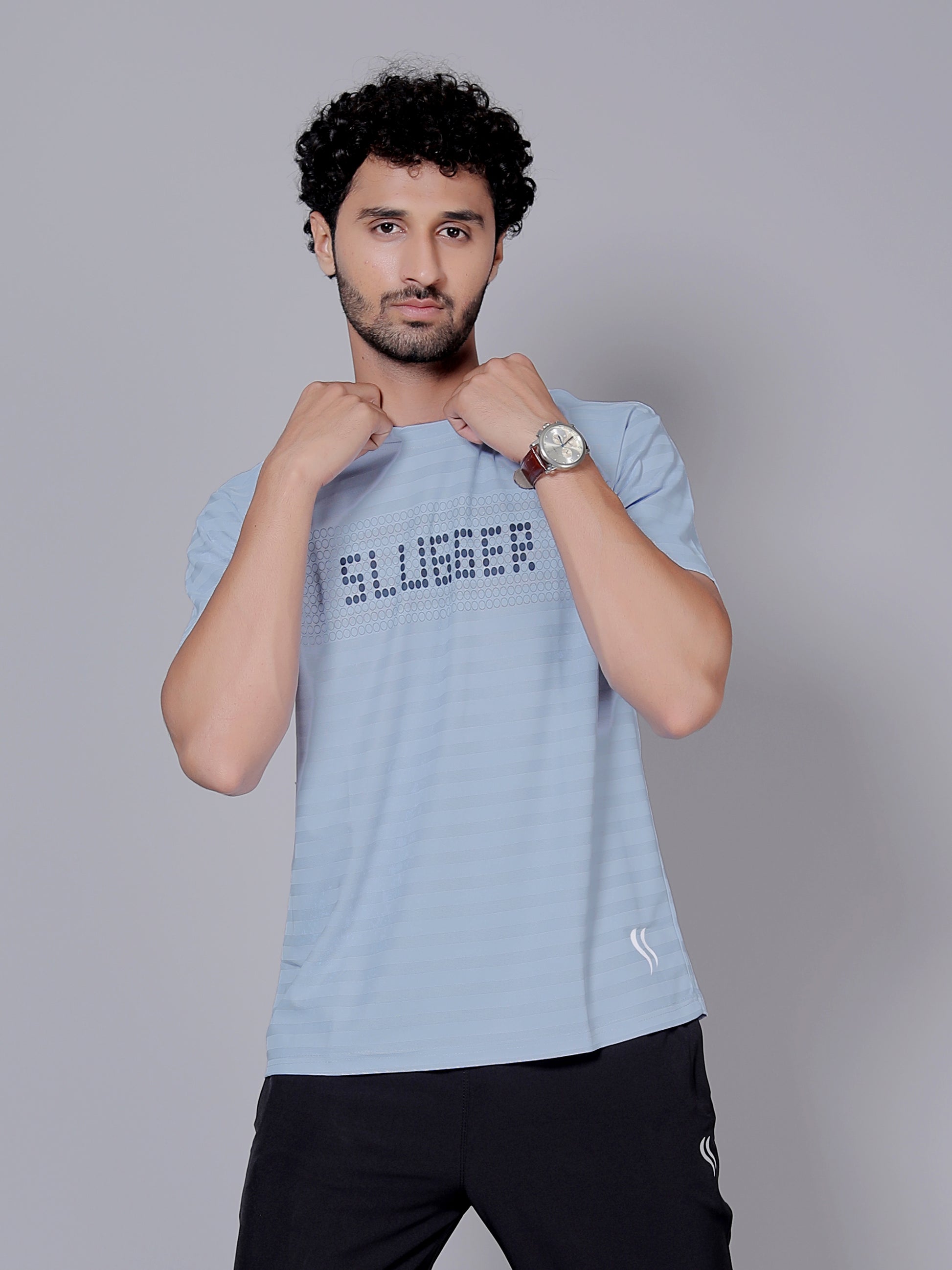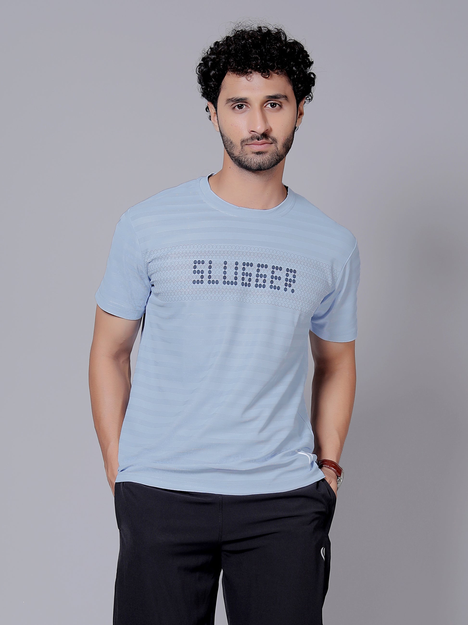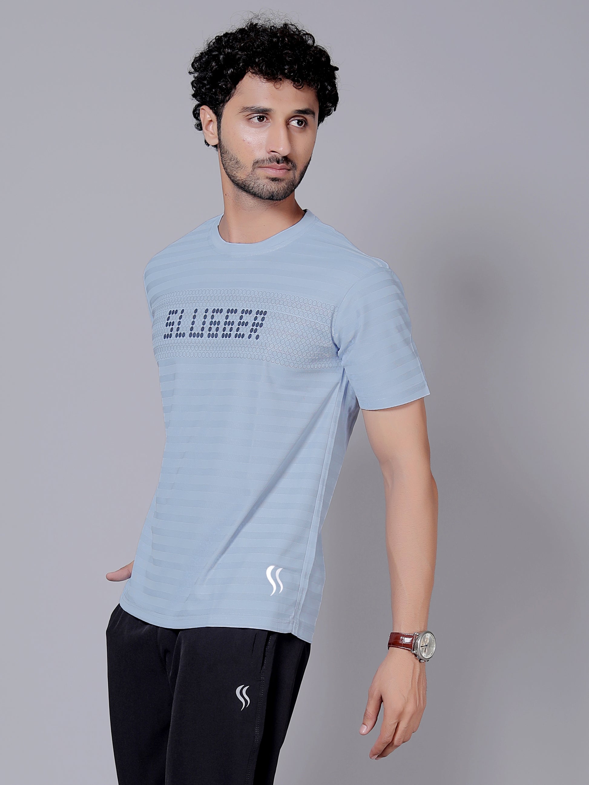 Sky blue doted Dry fit workout T-shirt | Regular Fit & Round Neck